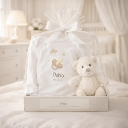 Teddybär und personalisierter Body mit dem Namen des Babys ANPASSBAR C367 59,94 € (21 noten) Ein entzückendes, umarmbares Geschenk für das neugeborene Baby. Präsentiert in unserem wunderschönen, personalisierten Tablett, ein 100% Baumwollbody in Größe 6 Monate, personalisiert mit einem Bild, um eine unvergessliche Erinnerung zu schaffen, und unser kuscheliger Doudou Big Bunny, der das Baby in seinen süßen Träumen begleiten wird und ihm das Gefühl... In den Warenkorb